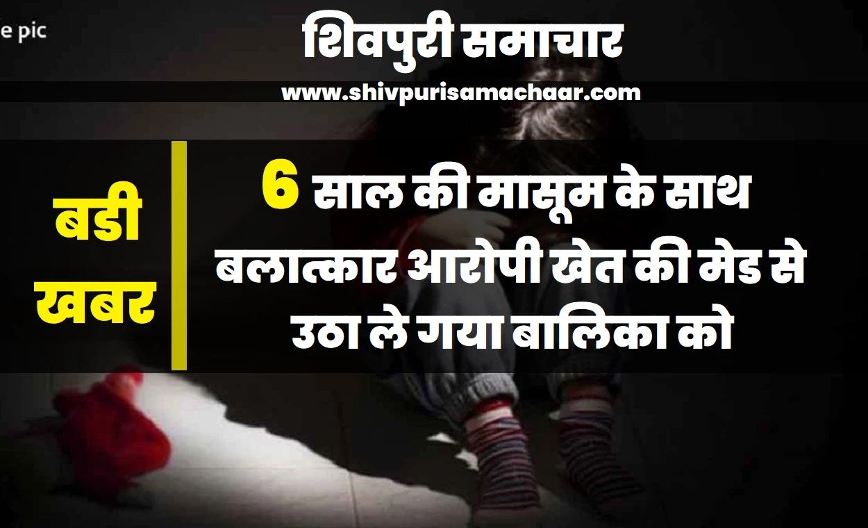 शिवपुरी। खबर जिले के सुरवाया थाना क्षेत्र के कोटा भगोरा से आ रही है कि पोहरी से अपनी के साथ अपनी बुआ के यहां आई 6 वर्षीय मासूम बलात्कार का शिकार हो गई। बताया जा रहा है की मासूम की मां खेतों में मजदूरी करने गई थी और गेहूं काट रही थी। बालिका खेत की मेड पर बैठी थी तभी बलात्कारी आया और बालिका को उठा ले गया। फिलहाल आरोपी अज्ञात हैं। बालिका अस्पताल में भर्ती है।